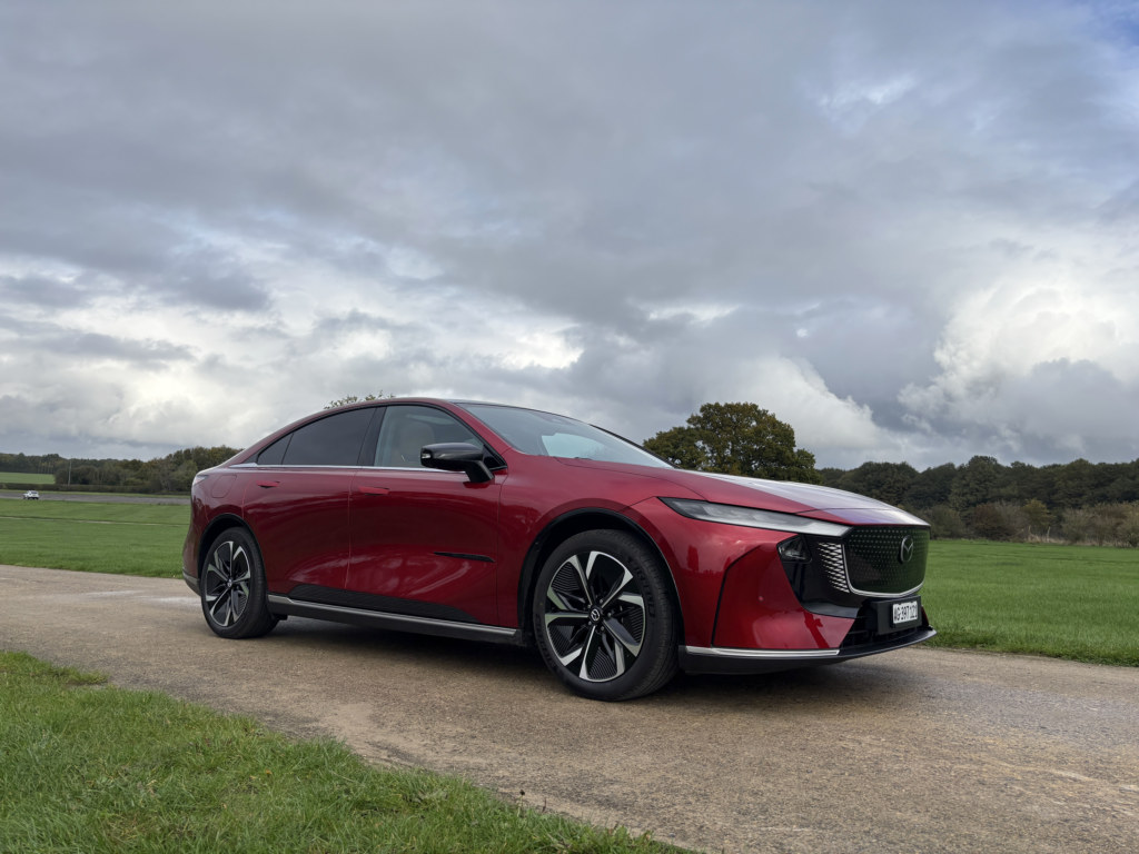 It comes in the form of a very sleek Mazda6e and the Japanese manufacturer was so keen to let us see it the first cars were actually Swiss and left hand drive.